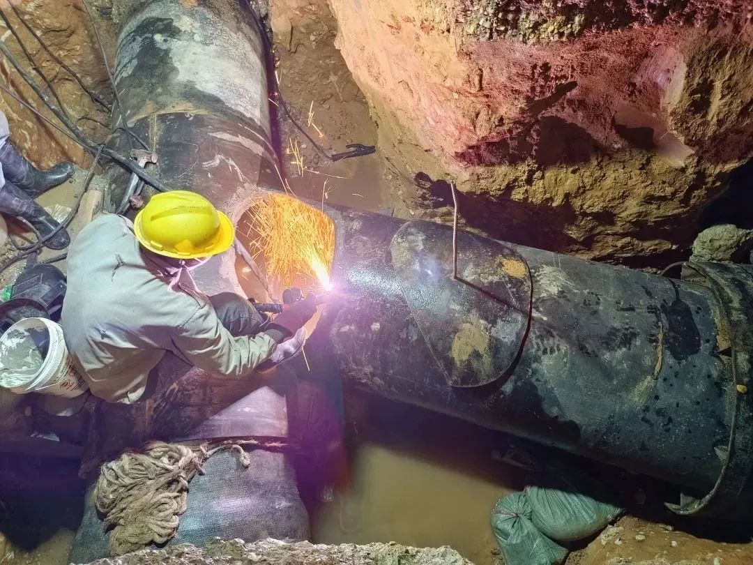 圖為水建公司負責建設的大學路過可利江段DN1000給水管連通工程施工現場