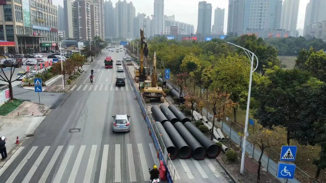 圖為水建公司負責建設的云景路(埌東加壓站—高坡嶺路)DN1000球墨鑄鐵給水管道工程施工現場