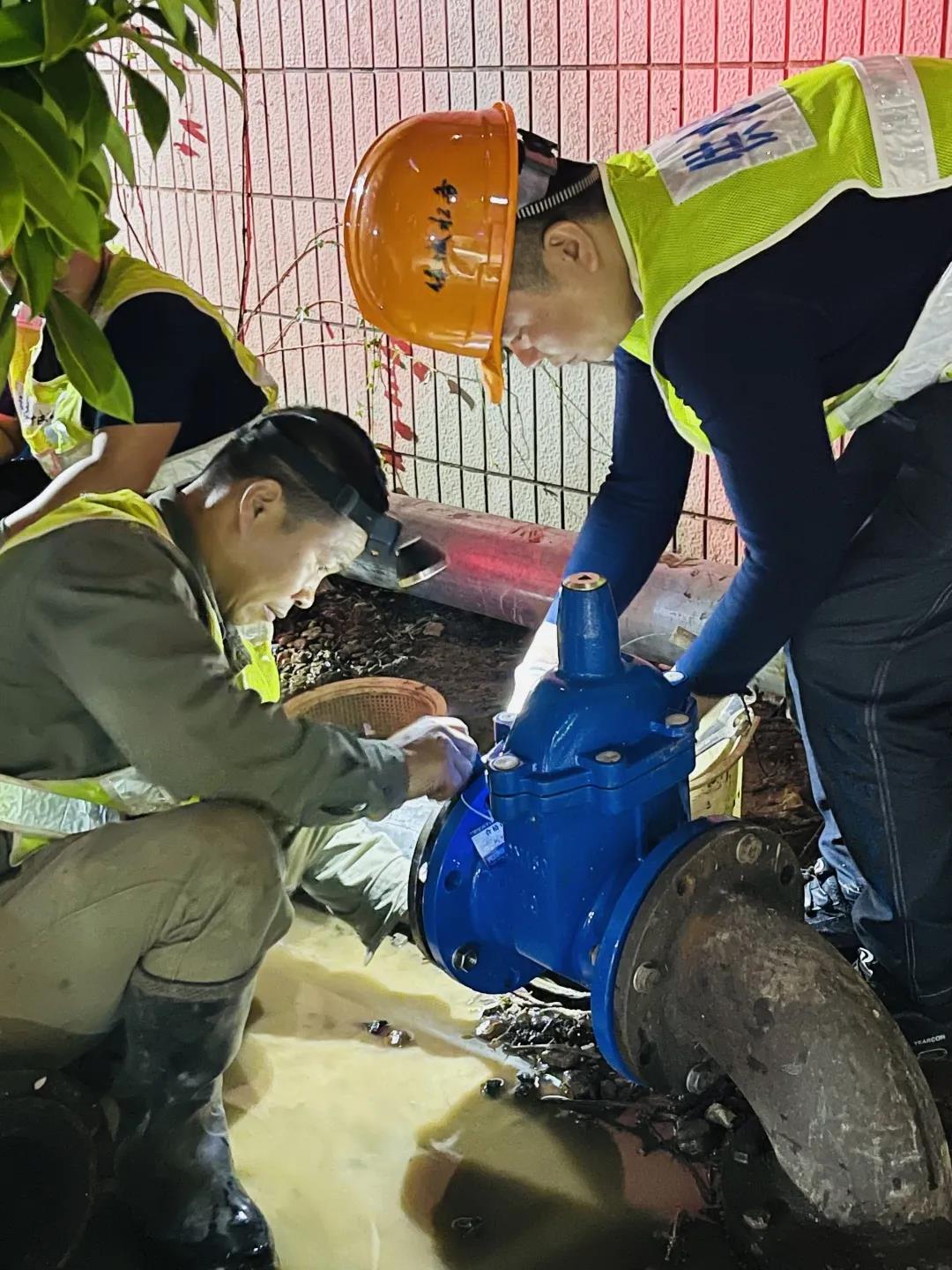 圖為管網(wǎng)管理處“水超人”黨員先鋒隊(duì)在對(duì)大會(huì)場(chǎng)所周邊供水管道開展巡查維護(hù)