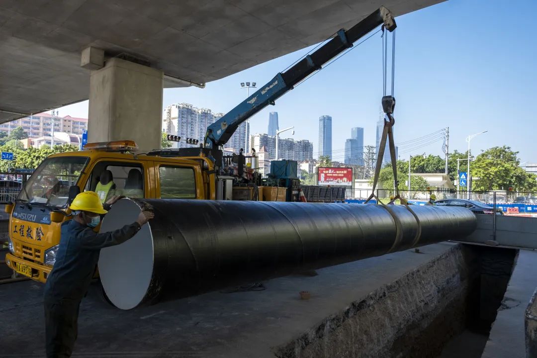 自來(lái)水通過(guò)供水管道輸送至千家萬(wàn)戶,是城市供水命脈。“壯族三月三”和清明節(jié)小長(zhǎng)假期間,作為南寧市主要供水企業(yè),廣西綠城水務(wù)股份有限公司(以下簡(jiǎn)稱(chēng)“綠城水務(wù)”)緊緊圍繞強(qiáng)首府“1+3”工作思路及“五強(qiáng)”重點(diǎn)工作部署,充分利用假期道路車(chē)流人流相對(duì)較少的有利時(shí)期,鉚足干勁加快供水管道建設(shè)。在市區(qū)東部和五象新區(qū),云景路DN1000球墨鑄鐵供水管道以及五象供水加壓站擴(kuò)建DN1000出水管正如火如荼地加快敷設(shè),預(yù)計(jì)在今年供水高峰期來(lái)臨前完工。屆時(shí),南寧市將新增兩個(gè)總長(zhǎng)約7500米的供水“大動(dòng)脈”,城區(qū)供水安全性更有保障。